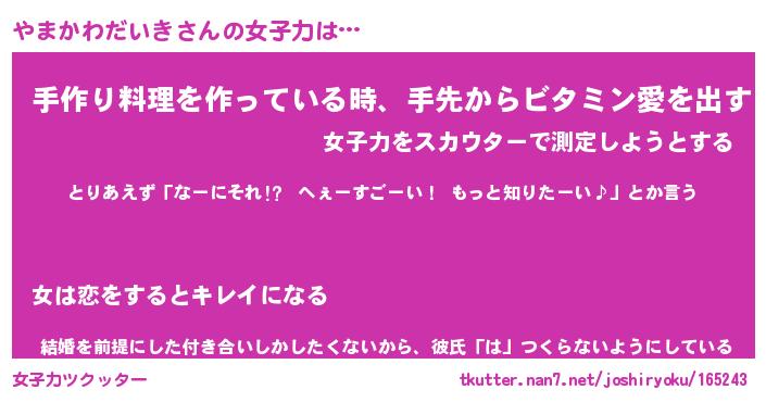 | ヘコむあだ名 | 『やまっふぃ~』『牛乳』『やまっぺ』 |
