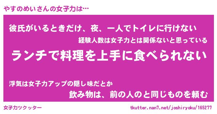 | ヘコむあだ名 | 『やすふぇ~』『豆乳』『やすを』 |