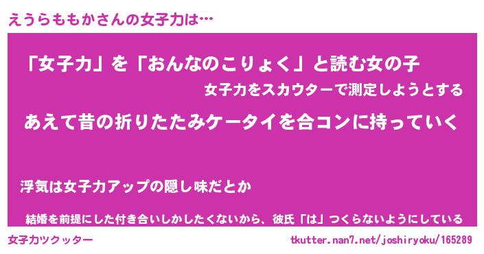 | 意味不明あだ名 | 『ペロリンえうらももか』 |