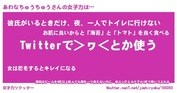 | ヘコむあだ名 | 『あわっふぃ~』『豆乳』『あわっ子』 |