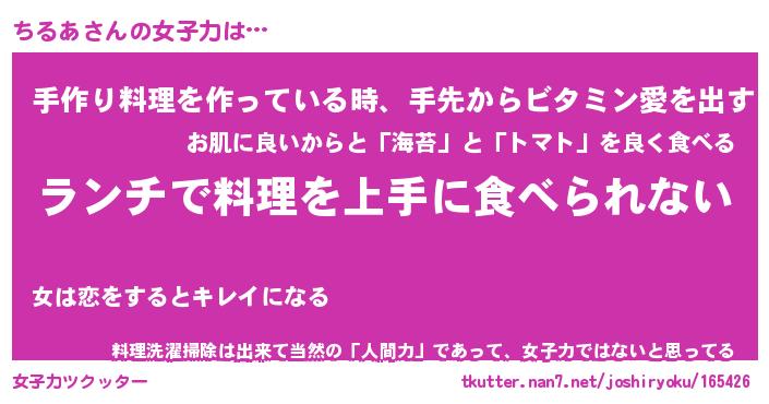 | ヘコむあだ名 | 『ちるにゅー』『牛乳』『ちるっ子』 |