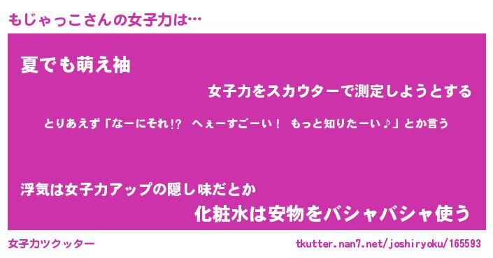 | ヘコむあだ名 | 『もじっふぃ~』『なまこ酢』 |