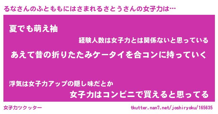 | 胡散臭い通販商品みたいなあだ名 | 『必ず成功する霊験あらたかなお札…その名も「るなさんのふとももにはさまれるさとう」』 |