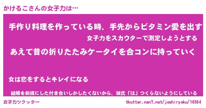 | 恥ずかしいあだ名 | 『プリティーかけるこ』『かけっちょ』 |