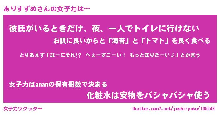| 恥ずかしいあだ名 | 『プリティーありすずめ』『ありっちょ』 |
