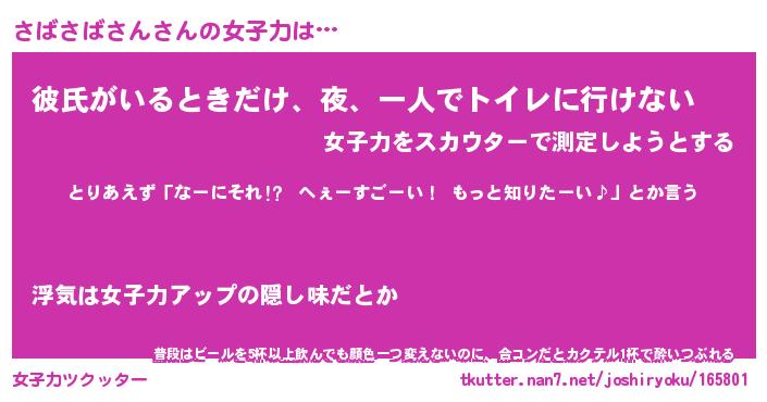 | ヘコむあだ名 | 『さばふぇ~』『牛乳』『さばお』 |