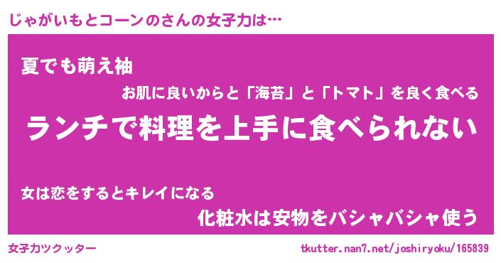 | 恥ずかしいあだ名 | 『プリティーじゃがいもとコーンの』 |