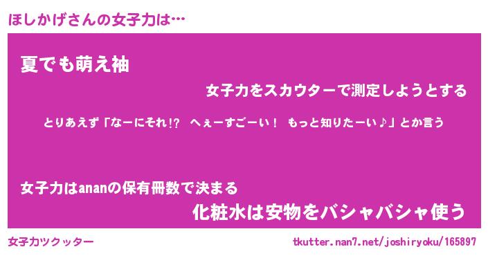 | ファンタジー風あだ名 | 『ホシフェル』『エターナルホシカゲー』 |