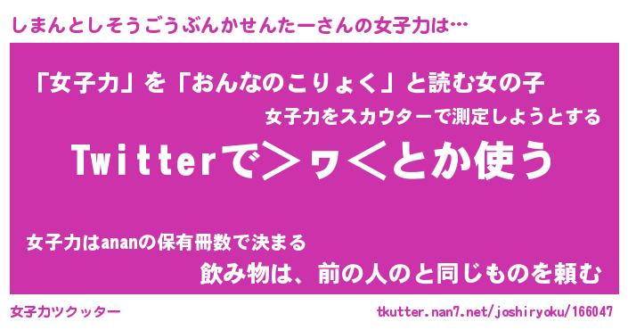 | 男性向けラノベタイトル風あだ名 | 『しまんとしそうごうぶんかせんたーの憂鬱』 |