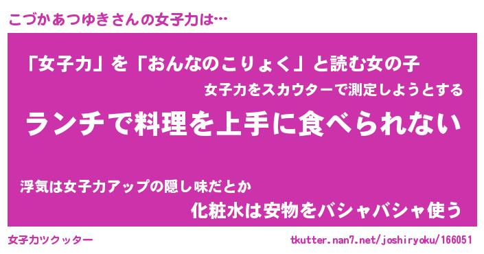 | ヘコむあだ名 | 『こづにー』『豆乳』『こづっちょ』 |