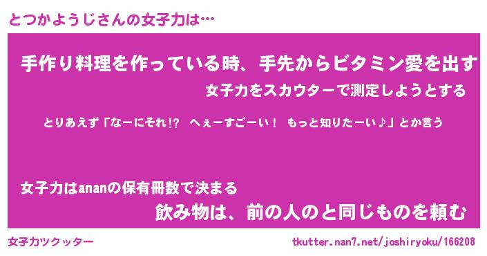 | 恥ずかしいあだ名 | 『プリティーとつかようじ』『とつっちょ』 |