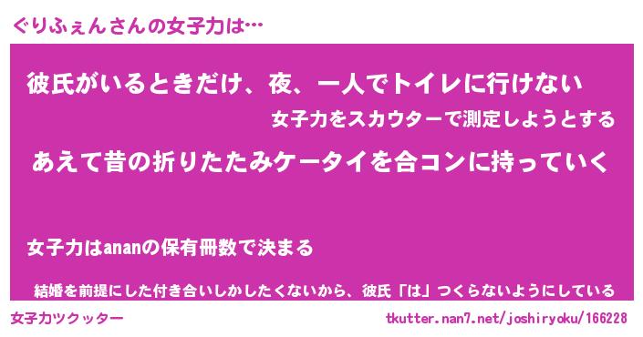 | 恥ずかしいあだ名 | 『プリティーぐりふぇん』『ぐりっちょ』 |