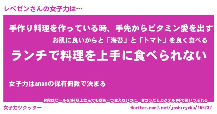 | ファンタジー風あだ名 | 『レペフェル』『エターナルレペゼンー』 |