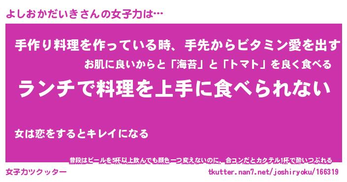 | 肩書あだ名 | 『よしおかだいき御曹司』 |