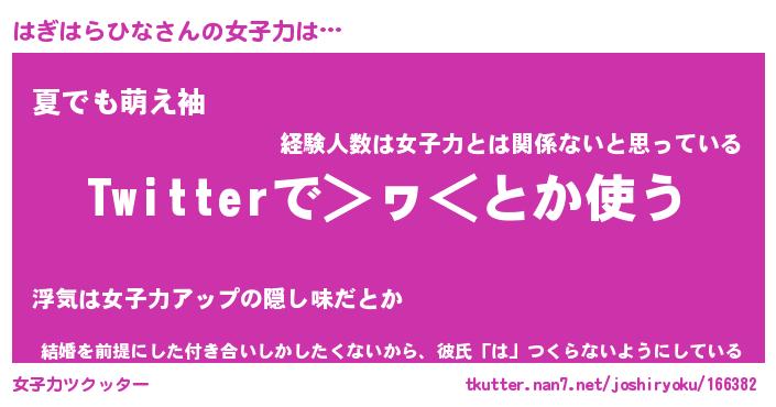 | ヘコむあだ名 | 『はぎふぇ~』『牛乳』『はぎぷりん』 |