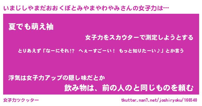 | ヘコむあだ名 | 『いまもー』『なまこ酢』『いまを』 |
