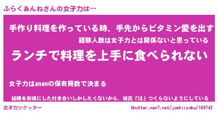 | ヘコむあだ名 | 『ふらにー』『豆乳』『ふらっ子』 |