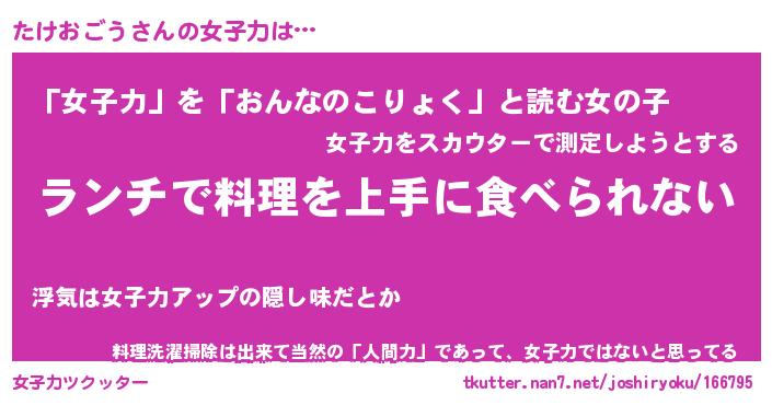 | ファンタジー風あだ名 | 『タケフェル』『エターナルタケオゴウー』 |