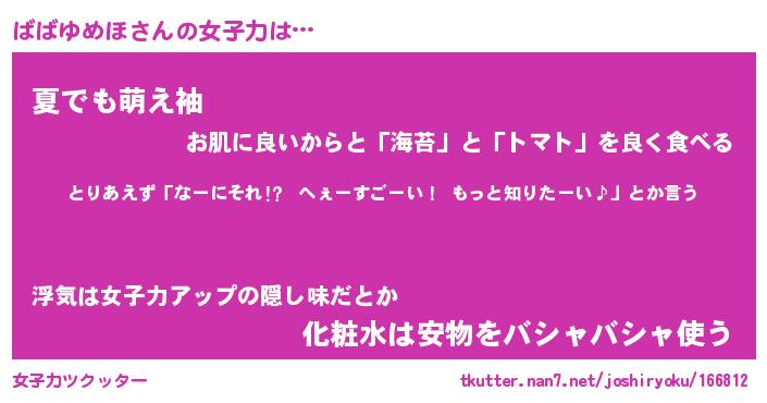 | 胡散臭い通販商品みたいなあだ名 | 『モテモテ間違いなし水晶球…その名も「ばばゆめほ」』 |
