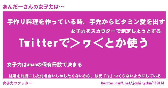 | 意味不明あだ名 | 『ペロリンあんだー』『永久保存あんだー』 |