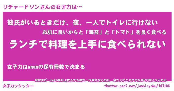 | 恥ずかしいあだ名 | 『プリティーリチャードソン』『リチちん』 |