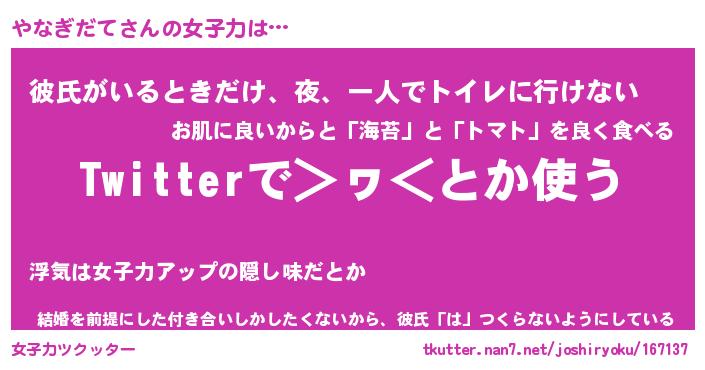 | ヘコむあだ名 | 『やなもー』『豆乳』『やなっぺ』 |
