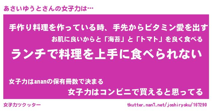 | 恥ずかしいあだ名 | 『プリティーあさいゆうと』『あさっちょ』 |