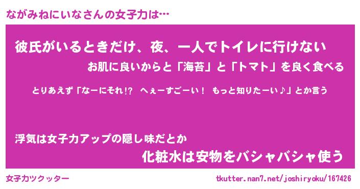 | ヘコむあだ名 | 『ながにゅー』『牛乳』『ながっぺ』 |