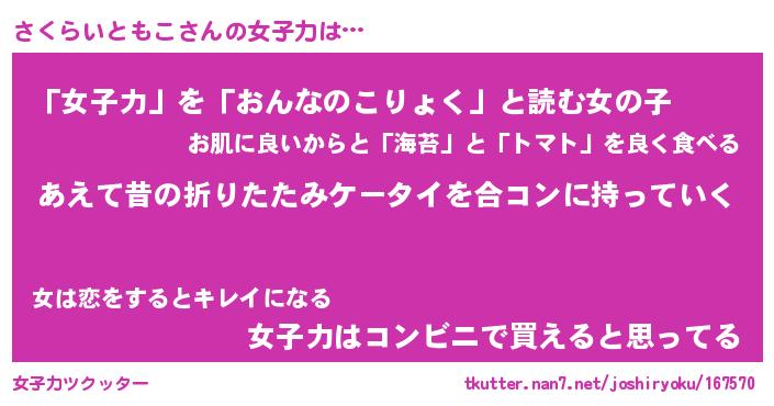 | 恥ずかしいあだ名 | 『プリティーさくらいともこ』『さくちん』 |