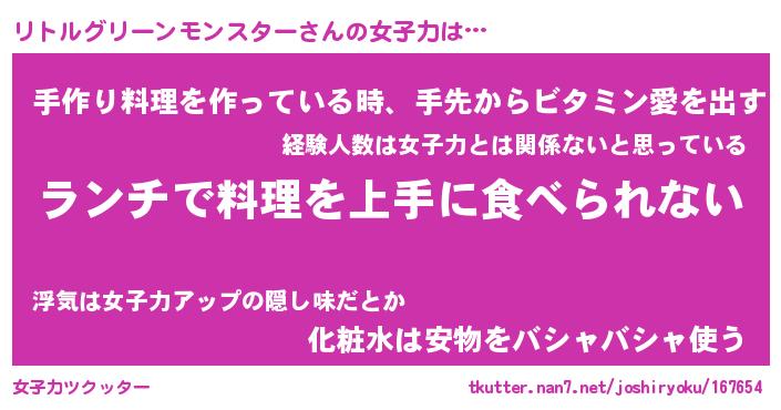 | 恥ずかしいあだ名 | 『プリティーリトルグリーンモンスター』 |