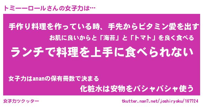 | 恥ずかしいあだ名 | 『プリティートミーーロール』『トミちん』 |