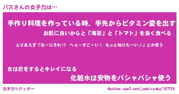 | ヘコむあだ名 | 『バスふぇ~』『つくし』『バス(笑)』 |