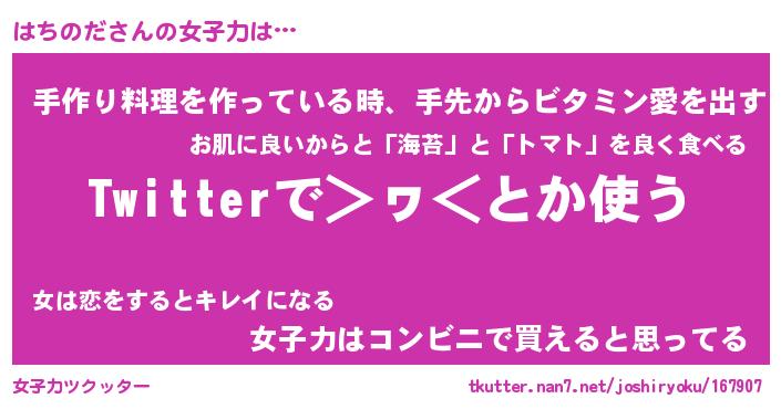 | ヘコむあだ名 | 『はちもー』『豆乳』『はちを』 |