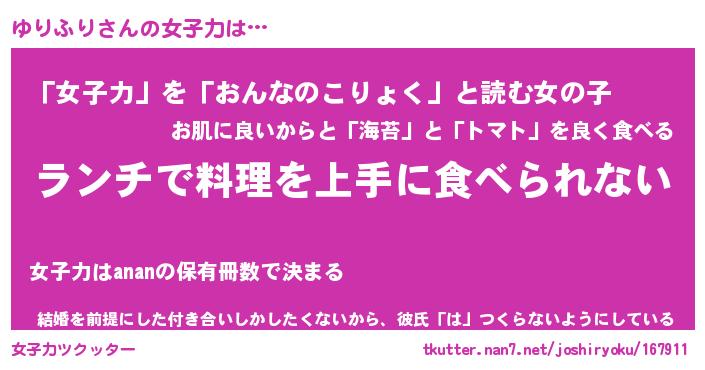 | 意味不明あだ名 | 『ペロリンゆりふり』『永久保存ゆりふり』 |