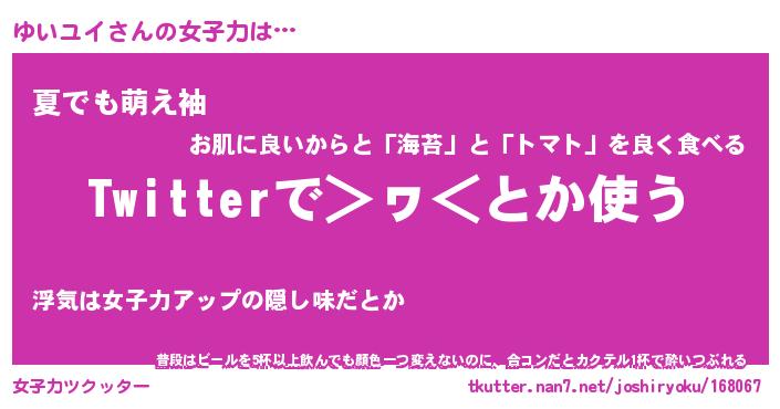 | 意味不明あだ名 | 『ペロリンゆいユイ』『永久保存ゆいユイ』 |