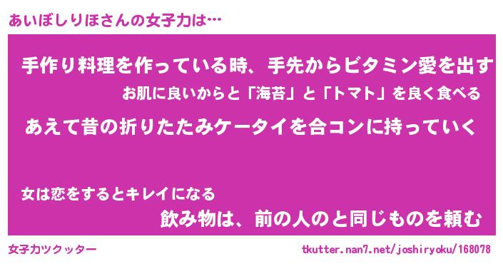 | 恥ずかしいあだ名 | 『プリティーあいぼしりほ』『あいっちょ』 |