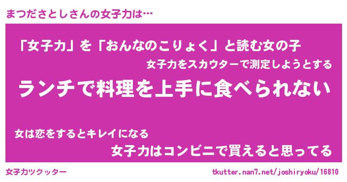 | ヘコむあだ名 | 『まつふぇ~』『酢こんぶ』『まつお』 |