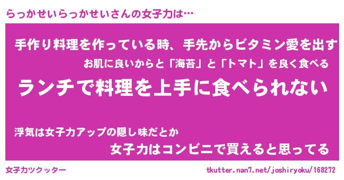| ヘコむあだ名 | 『らっにゅー』『牛乳』『らっ太郎』 |