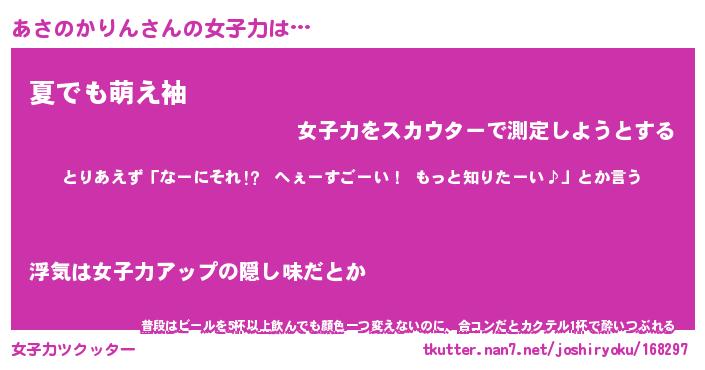 | 恥ずかしいあだ名 | 『プリティーあさのかりん』『あさっちょ』 |