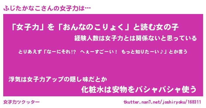 | 伝説のあだ名 | 『封印されしスナイパーふじたかなこ』 |