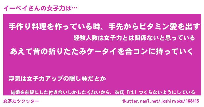 | ファンタジー風あだ名 | 『イーフェル』『エターナルイーベイー』 |