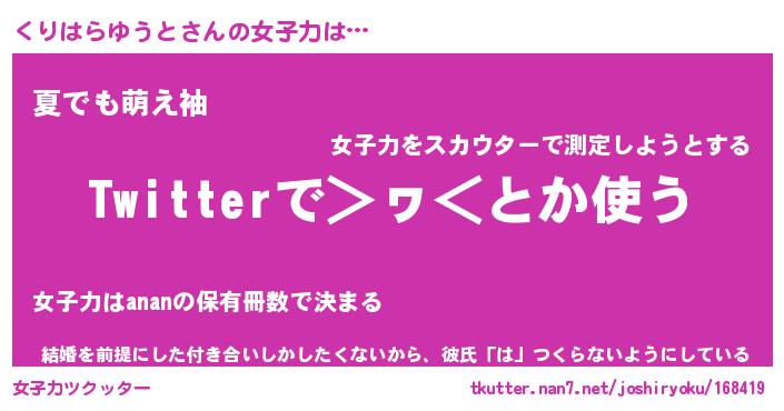くりはらゆうとさんの女子力をツクッター!