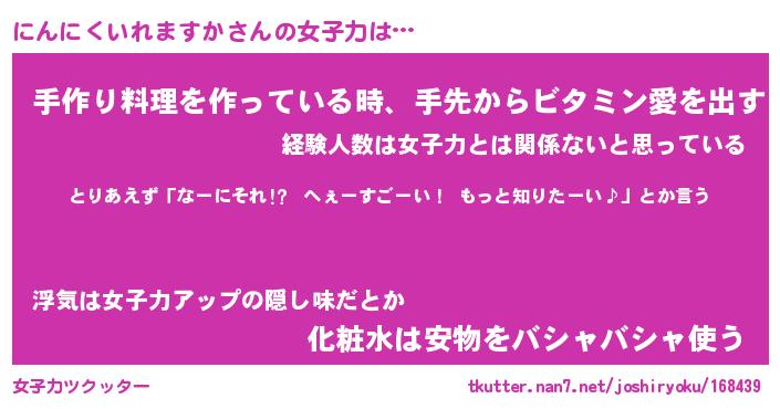 | 料理風あだ名 | 『節約★にんにくいれますかと油揚げの玉子丼』 |