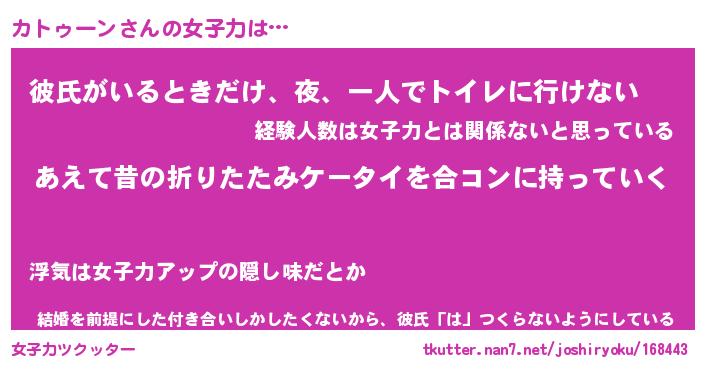 | 恥ずかしいあだ名 | 『プリティーカトゥーン』『カトっちょ』 |