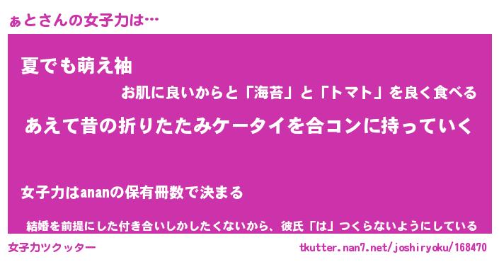 | ヘコむあだ名 | 『ぁとっふぃ~』『なまこ酢』 |