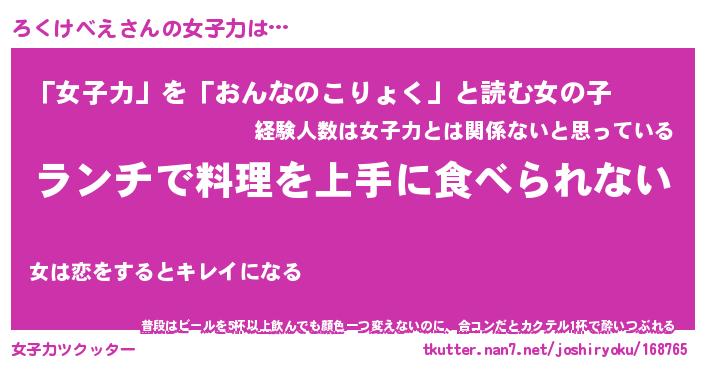 | ヘコむあだ名 | 『ろくもー』『レバニラ』『ろくっぺ』 |