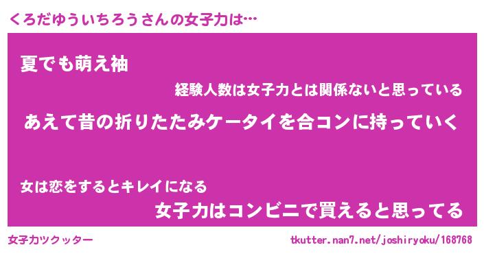 | ヘコむあだ名 | 『くろっふぃ~』『なまこ酢』 |
