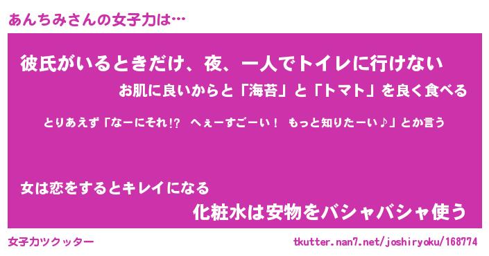 | 意味不明あだ名 | 『ペロリンあんちみ』『永久保存あんちみ』 |