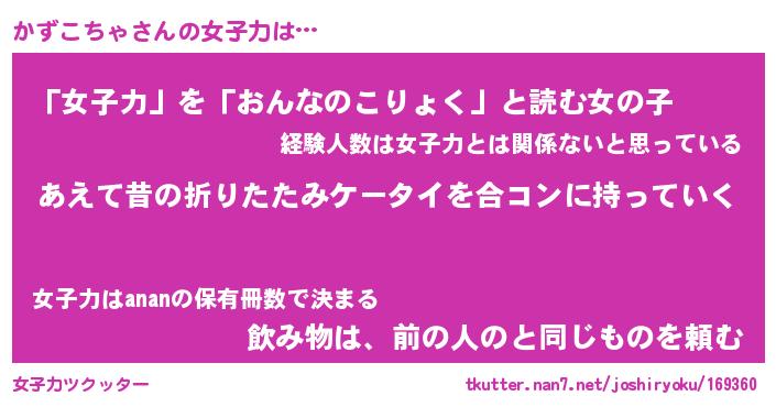 | 女子向けラノベタイトル風あだ名 | 『(仮)かずこちゃのやんごとなき事情』 |