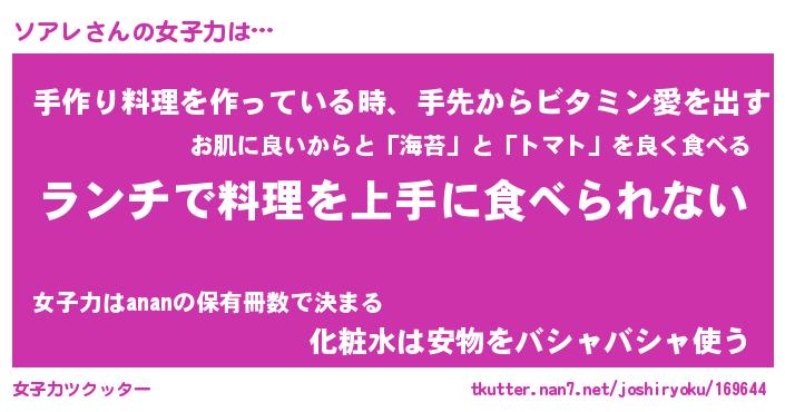 | ヘコむあだ名 | 『ソアふぇ~』『つくし』『ソアっ子』 |